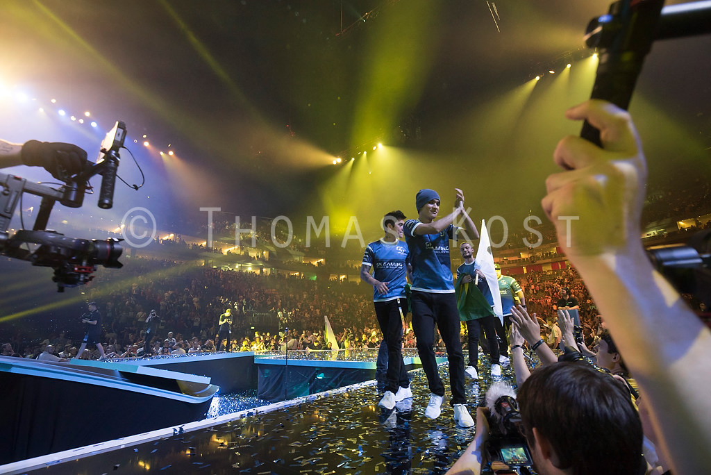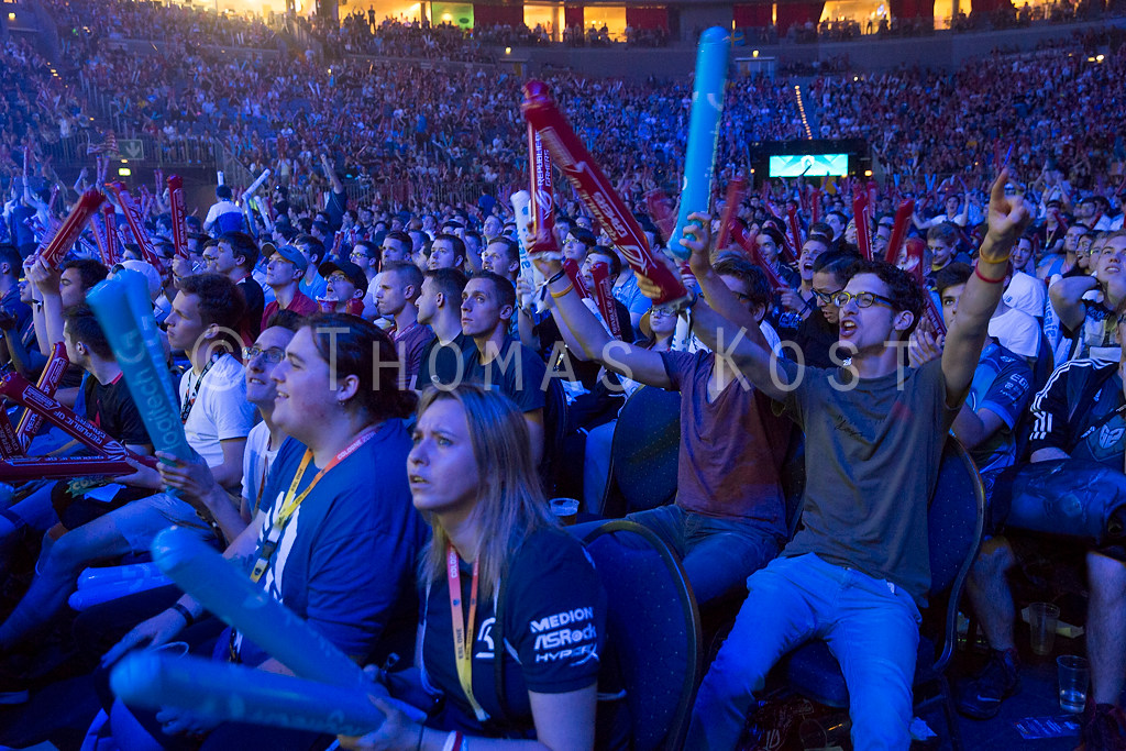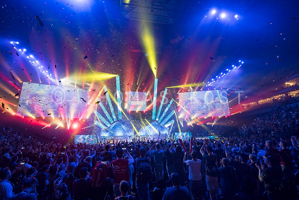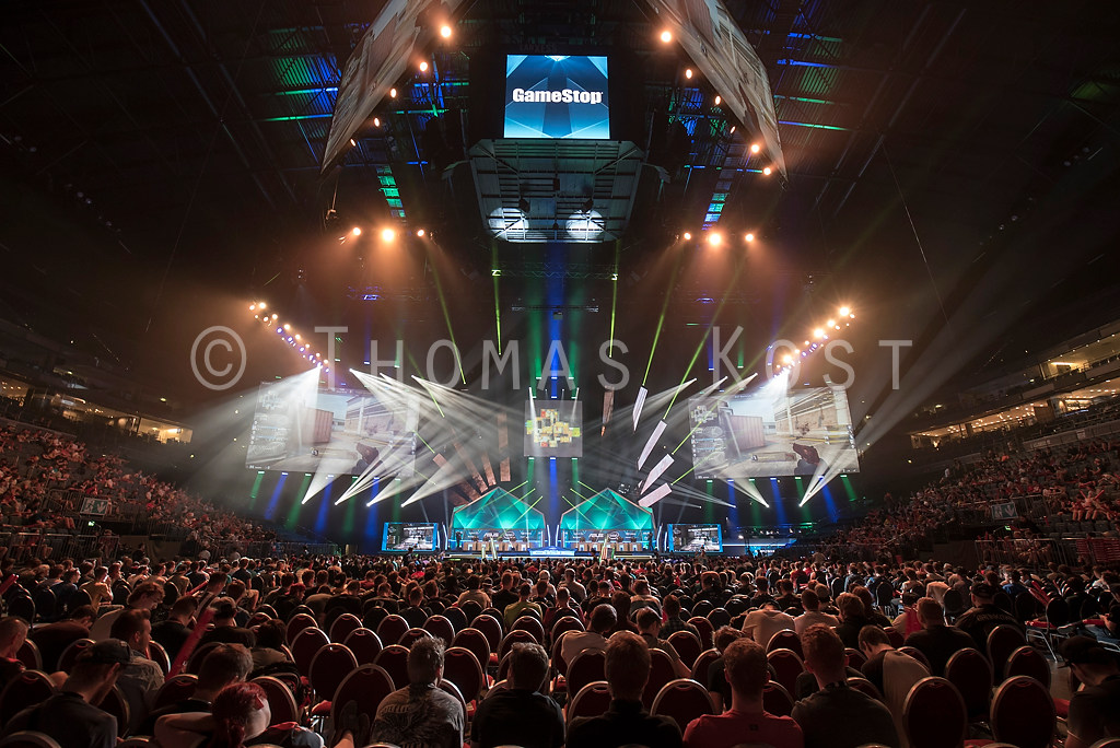 Mehrere Tage lieferten sich professionelle Teams auf Leinwänden virtuelle Kämpfe verfolgt von bis zu 14000 Menschen in der ausverkauften Laxess Arena.